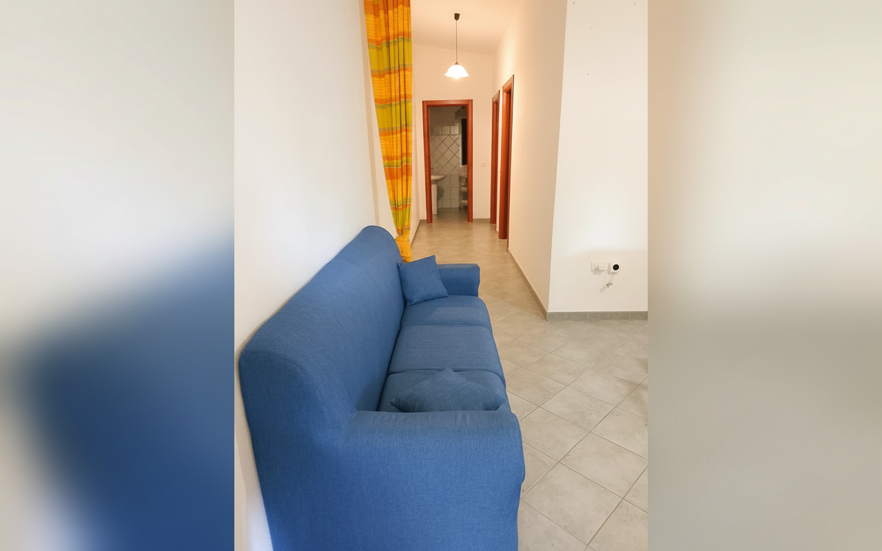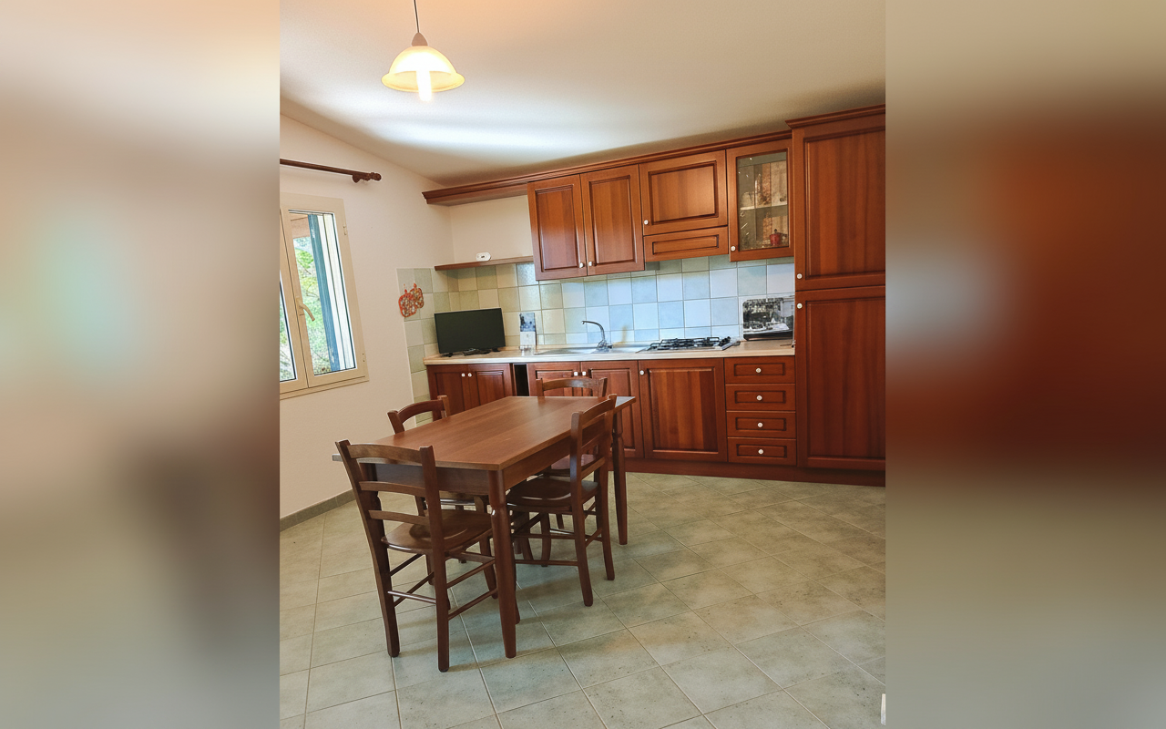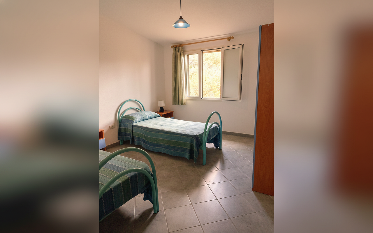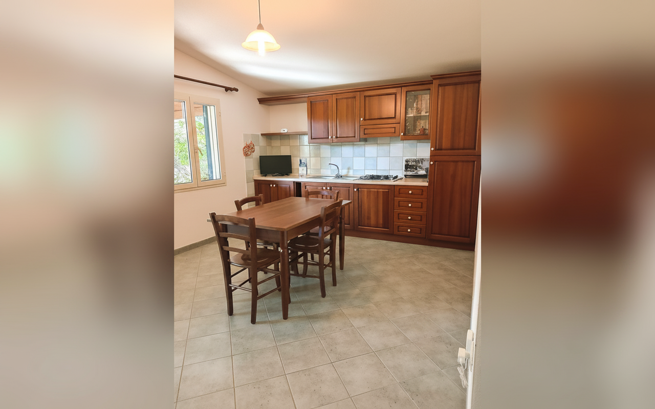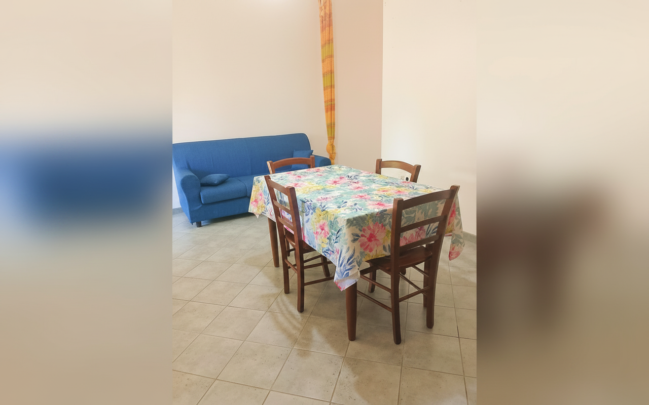 Appartamento composto da una camera matrimoniale alla francese, una camera con due letti singoli, bagno privato e cucina completa. Gli spazi sono ampi e funzionali, ideali per famiglie o piccoli gruppi fino a 4 persone. Dotato di veranda e affacciato su giardino e natura circostante, è perfetto per vivere il soggiorno in totale relax e autonomia.