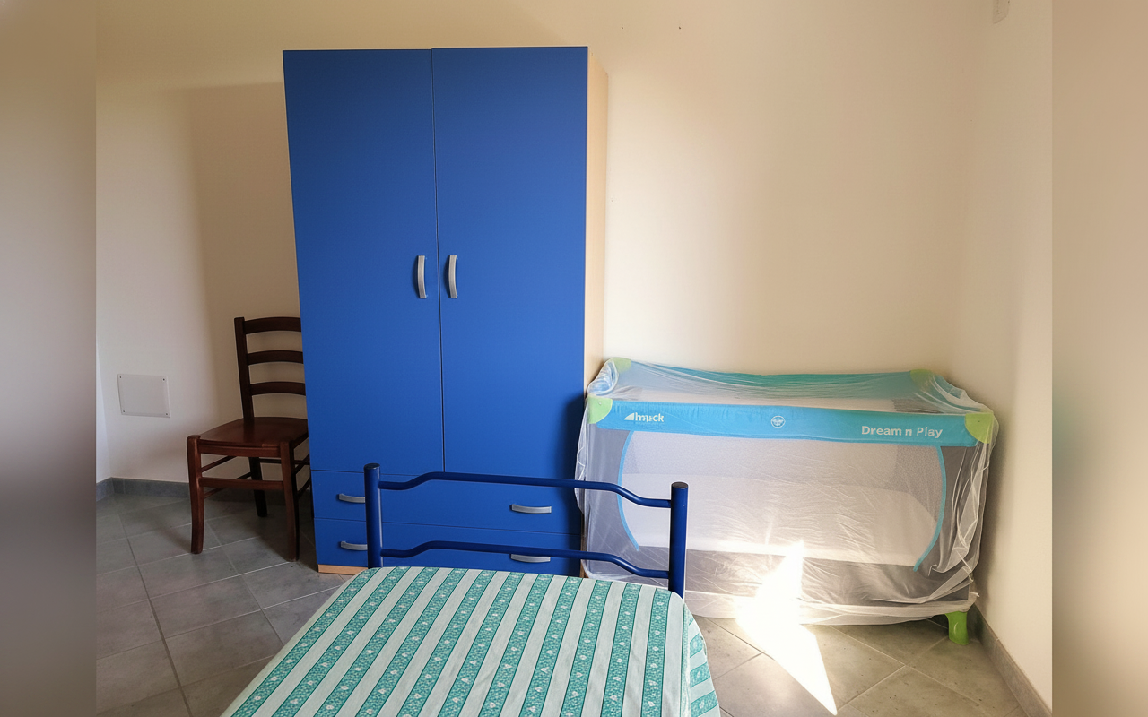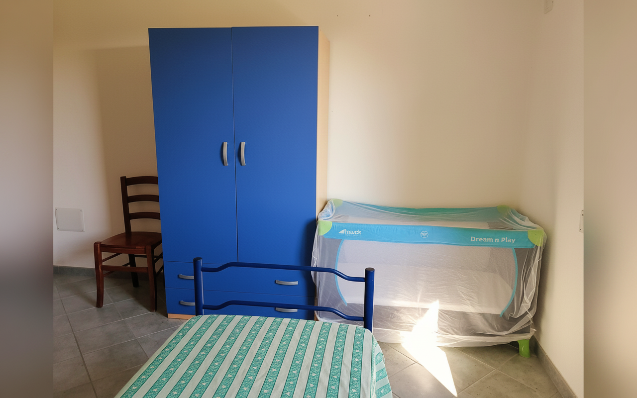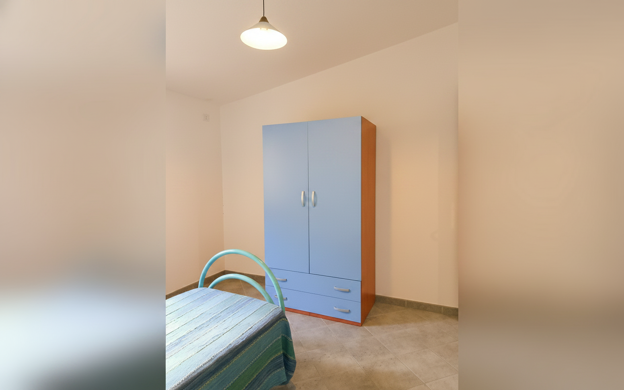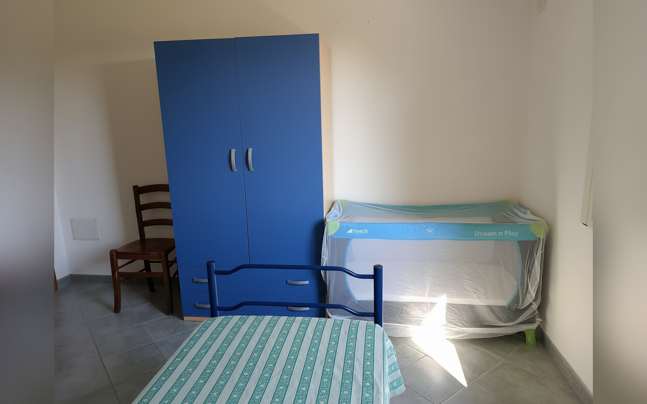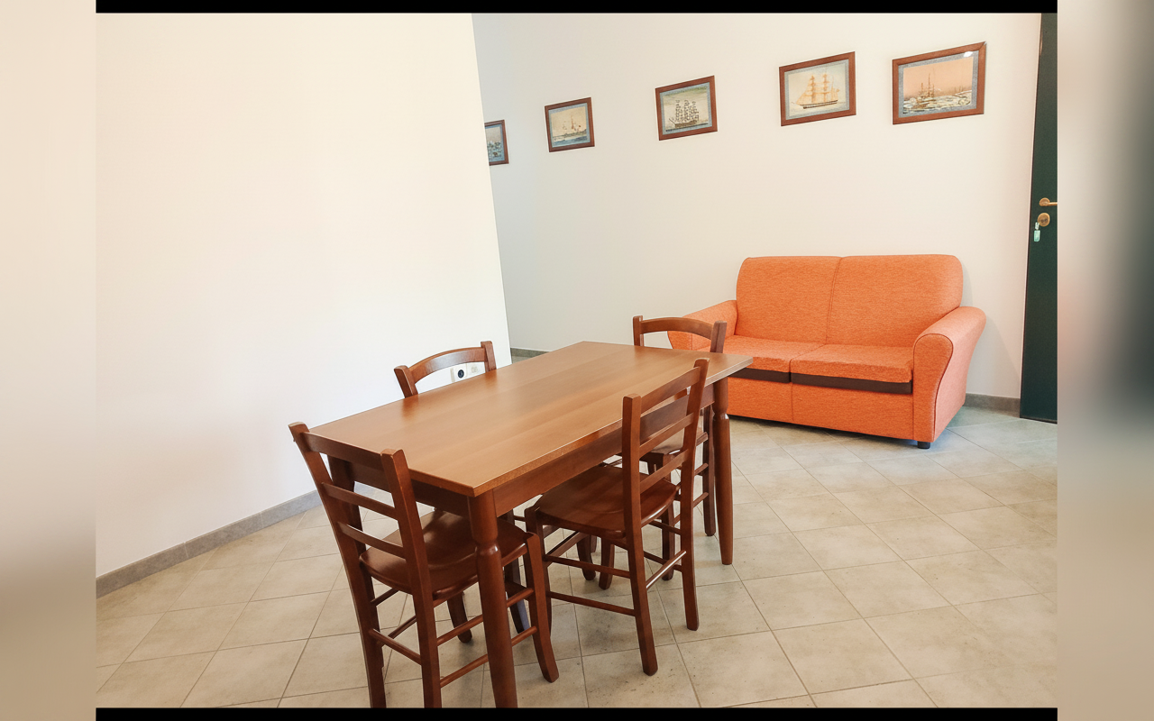 Appartamento composto da una camera matrimoniale alla francese, una camera con due letti singoli, bagno privato e cucina completa. Gli spazi sono ampi e funzionali, ideali per famiglie o piccoli gruppi fino a 4 persone. Dotato di veranda e affacciato su giardino e natura circostante, è perfetto per vivere il soggiorno in totale relax e autonomia.